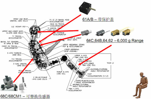 汽車(chē)碰撞測(cè)試實(shí)驗(yàn)中假人身上都需要哪些加速度傳感器?假人身上的加速度傳感器的安裝位置是什么樣的?