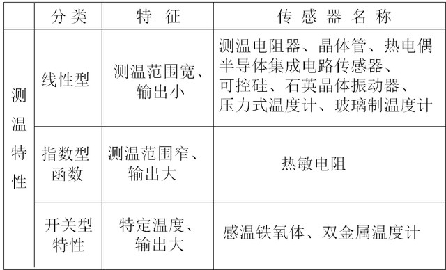 特性與溫度之間的關(guān)系要適中,并容易檢 測和處理,且隨溫度呈線性變化; 除溫度以外,特性對其它物理量的靈敏度要低; 特性隨時(shí)間變化要; 重復(fù)性好,沒有滯后和老化; 靈敏度高,堅(jiān)固耐用,體積小,對檢測對象的影響要; 機(jī)械性能好,耐化學(xué)腐蝕,耐熱性能好; 能大批量生產(chǎn),價(jià)格便宜; 無危險(xiǎn)性,無公害等。