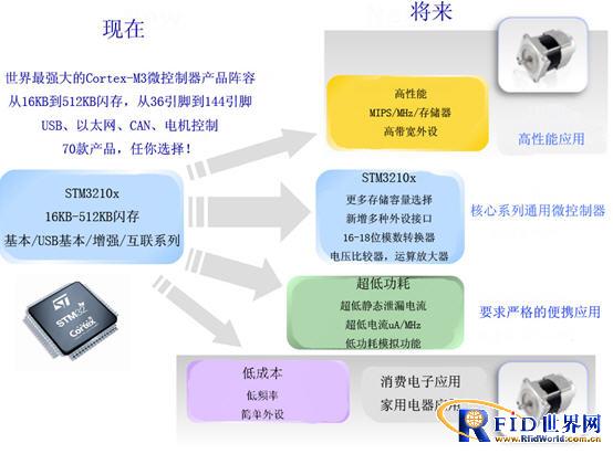 從功率開關(guān)分立器件,到復雜的系統(tǒng)芯片,意法半導體承諾以其獨有的產(chǎn)品組合長期支持電機控制市場。STM32微控制器產(chǎn)品線將繼續(xù)沿四個新方向部署,如圖3所示,其中兩個方向適用于電機控制。第一個產(chǎn)品線將面向低成本市場,開發(fā)低端的16位電機控制微控制器。另一個產(chǎn)品線以高性能為訴求,面向需要更高處理性能、更大存儲容量和高帶寬接口的應用。如此寬廣的產(chǎn)品組合結(jié)合Cortex-M3內(nèi)核,勢必確立STM32架構(gòu)適用于現(xiàn)在和未來電機驅(qū)動的多功能性。