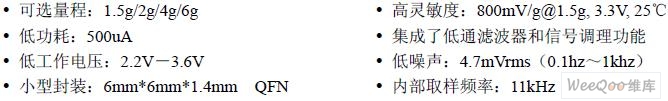 2.2 三軸MEMS 加速度計: 本系統(tǒng)中的加速度計選用了 Freescale 的MMA7260Q 單片三軸加速度計。MMA7260Q 是一個低成本的電容式微機(jī)械加速度計,其內(nèi)部具有信號調(diào)整、單極低通濾波器、溫度補(bǔ)償 等功能,其量程可以通過編程選擇1.5g/2g/4g/6g 之一。其主要特點(diǎn)如下: