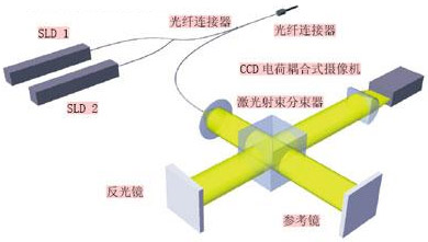 Fraunhofer研究所研發(fā)的這種檢測(cè)系統(tǒng)基于短波激光干涉原理,主要由兩個(gè)相干性激光部件組成。其中的第一個(gè)是純光學(xué)的全光纖技術(shù)元件(SLD1),第二個(gè)則是Michelson激光干涉器(SLD2)。這種檢測(cè)儀器的檢測(cè)距離大約為500μm,清晰度達(dá)1nm的檢測(cè)范圍約80μm.