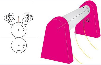 在這個(gè)系統(tǒng)中,旋轉(zhuǎn)的回轉(zhuǎn)體零部件的圓度和圓跳動(dòng)對(duì)檢測(cè)的精度、噪聲和整個(gè)系統(tǒng)的磨損有著重要的影響,源于它們的錯(cuò)誤信號(hào)應(yīng)在生產(chǎn)加工過(guò)程中及時(shí)的予以識(shí)別并排除,其中包括機(jī)床重要的零部件,如輸出軸、轉(zhuǎn)子、主軸、軋輥(支撐輥和工作輥)和導(dǎo)向輥。在這些回轉(zhuǎn)體零件上應(yīng)安裝傳感器,以便采集重要的生產(chǎn)過(guò)程數(shù)據(jù),及時(shí)地采取必要措施。