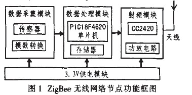 由于無線傳感器網(wǎng)絡(luò)在通信上消耗較大能量,選用功耗較小的PICl8F4620單片機(jī)為處理器。以及選用cc2420為通信器件,設(shè)計(jì)無線網(wǎng)絡(luò)節(jié)點(diǎn),因此。這里提出一種基于CC2420的ZigBee無線網(wǎng)絡(luò)節(jié)點(diǎn)的設(shè)計(jì)方案。