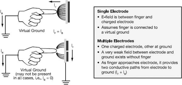近接電容式傳感是一項支持觸摸檢測的技術(shù),它通過測量電容和展示電容變化來反映周圍材料的變化。某些傳感器通過生成電場并測量該電場所遭受的衰減,進而測出變化。與感應式傳感器不同的是,近接電容式傳感器能夠檢測具有傳導性的任何事物或不同于傳感器電極環(huán)境介電性能的任何事物。它們是出色的觸摸板支持工具,由于我們?nèi)梭w的主要成分是水,具有很高的介電常數(shù);并且我們體內(nèi)包含離子物質(zhì),這使得人體成為很好的電導體。