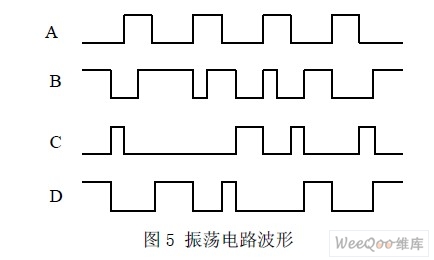 A、B、C、D 四個(gè)點(diǎn)的波形如圖5 所示。由圖4 中U1 的4 個(gè)或非門組合邏輯可知: