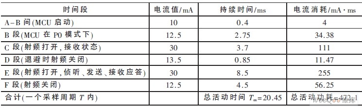 2 傳感器節(jié)點(diǎn)功耗計(jì)算