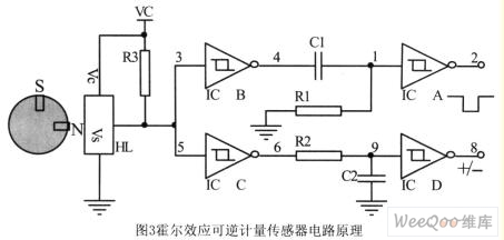 圖3霍爾效應(yīng)可逆計量傳感器電路原理
