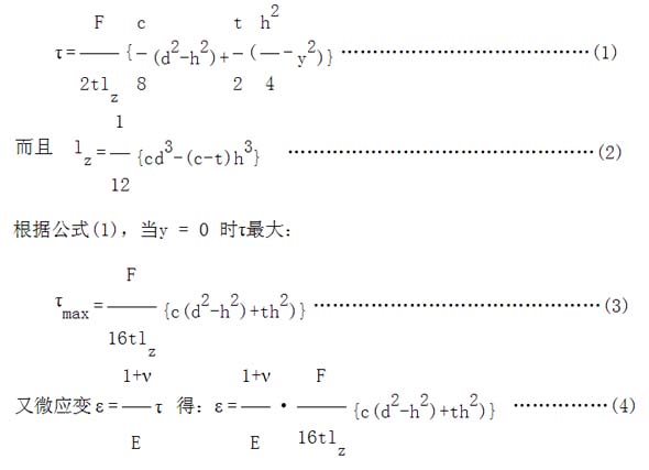 由彈性體應(yīng)變部位斷面受力分析圖(圖2)得剪切應(yīng)力: