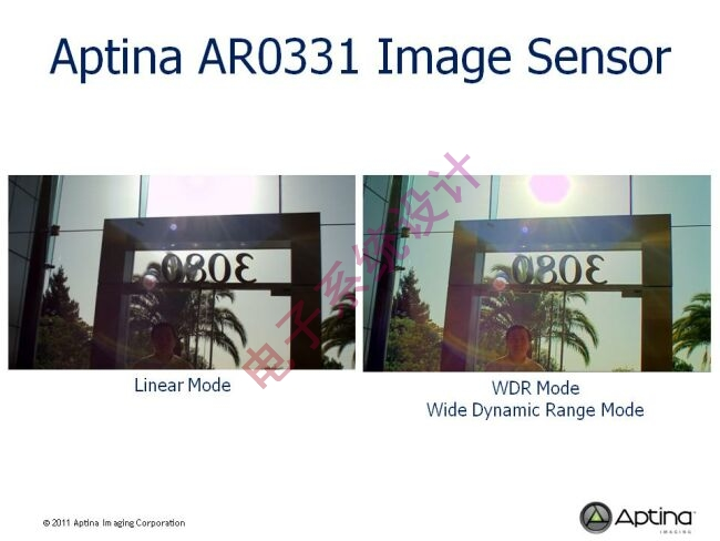 圖2:Aptina AR0331圖像傳感器在線性和多重曝光寬動(dòng)態(tài)范圍兩種模式下所獲得的影像。