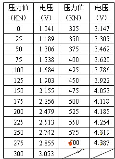 圖4為壓力值和輸出電壓值的關(guān)系曲線,雖存在電橋電路的非線性,電阻應(yīng)變片的非線性和彈性元件的非線性等因素,但由傳感器工作特性曲線我們可以看出,在重要工作區(qū)間(1~500KN),壓力值和輸出電壓值存在較好的線性關(guān)系。