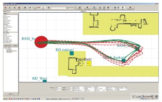 Seekur系統(tǒng)使用多種距離傳感器。對(duì)于室內(nèi)應(yīng)用,該系統(tǒng)采用270°激光掃描器為其環(huán)境構(gòu)建映射圖。激光系統(tǒng)通過(guò)能量返回模式和信號(hào)返回時(shí)間測(cè)量物體形狀、尺寸及與激光源的距離。在映射模式中,激光系統(tǒng)通過(guò)將工作區(qū)內(nèi)多個(gè)不同位置的掃描結(jié)果組合,描述工作區(qū)特性(圖 5)。這樣便產(chǎn)生了物體位置、尺寸和形狀的映射圖,作為運(yùn)行時(shí)掃描的參考。激光掃描器功能結(jié)合映射信息使用時(shí),可提供精確的位置信息。該功能如果單獨(dú)使用,會(huì)存在一定限制,包括掃描時(shí)需要停機(jī)以及無(wú)法處理環(huán)境變化等等。在倉(cāng)庫(kù)環(huán)境中,人員、叉車(chē)、托盤(pán)搬運(yùn)車(chē)及許多其他物體常常會(huì)改變位置,這可能影響到達(dá)目的地的速度,以及到達(dá)正確目的地的精度。