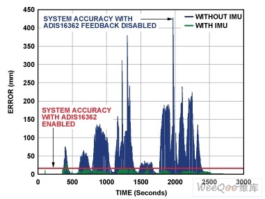 圖 9. 使用MEMS陀螺儀反饋時(shí)的Seekur路徑精度。