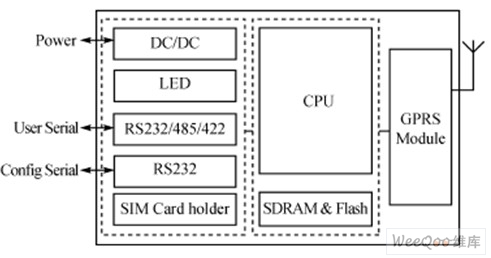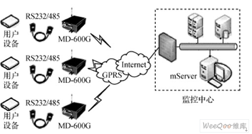 智能無線數(shù)據(jù)終端MD600G可以用于數(shù)據(jù)中心和被監(jiān)控設(shè)備間,實(shí)現(xiàn)數(shù)據(jù)的遠(yuǎn)程透明傳輸。MD600G的內(nèi)部結(jié)構(gòu)如圖1所示,它有如下特點(diǎn):