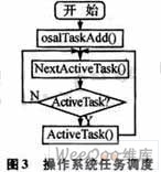 本次的軟件設(shè)計基于TI公司Z-Stack 2006協(xié)議棧。Z-Stack 2006是TI公司專門為CC2430芯片設(shè)計的ZigBee協(xié)議棧。它由1個簡單的單線程的操作系統(tǒng)管理。該操作系統(tǒng)基于任務(wù)調(diào)度機制,任務(wù)通過API函數(shù)osalTaskAdd()按照優(yōu)先級添加到任務(wù)鏈表。任務(wù)的事件觸發(fā)實現(xiàn)任務(wù)調(diào)度。每個任務(wù)最多可定義16個事件,每個事件都對應(yīng)1個唯一的事件號。NextActiveTask()是任務(wù)事件查詢函數(shù),返回任務(wù)的事件狀態(tài)ActiveTask,根據(jù)返回的事件值來調(diào)用相應(yīng)的任務(wù)處理函數(shù)ActiveTask()進行處理。操作系統(tǒng)任務(wù)調(diào)度如圖3所示。