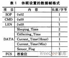 數(shù)據(jù)中轉(zhuǎn)器通過串口向匯聚節(jié)點發(fā)送的休眠設(shè)置命令的數(shù)據(jù)幀格式如表1所列。