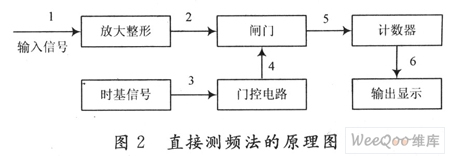 直接測頻法就是在一定的時間間隔T內,也就是所謂的閘門時間內測得輸入周期信號重復變換的次數(shù)N,于是根據頻率與周期的關系,被測信號的頻率可以表示為: