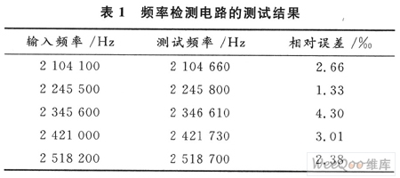 最后,采用了Altera DE2開發(fā)板,將設計的電路下載到硬件電路中,從而完成了對整個頻率檢測電路的設計工作,并利用函數(shù)發(fā)生器對電路進行了驗證。在2 MHz左右的測試結果如表1所示。
