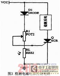 本系統(tǒng)中將光敏電阻與單向可控硅配合使用,組成檢測(cè)電路的啟動(dòng)開關(guān)電路。其原理圖如圖3所示。