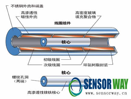 如果核芯位于次級(jí)線圈之間的中心,則每根次級(jí)線圈感應(yīng)的電壓相同,存在180度的異相,因此沒(méi)有凈輸出。如果核心被移離中心,則初級(jí)線圈與次級(jí)線圈的互感將大于另一線圈的互感,將在串行次級(jí)線圈中出現(xiàn)壓差。對(duì)于該操作范圍之內(nèi)的偏心位移,該電壓主要是位移的一個(gè)線性函數(shù)。通常,該交流電輸出電壓被采用電子回路轉(zhuǎn)換到高電平直流電壓或者使用更方便的電流。