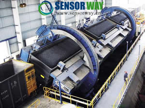 筒式翻車機(jī)是應(yīng)用最廣的一種翻車機(jī),它將載貨敞車推入形似轉(zhuǎn)筒的金屬構(gòu)架內(nèi)夾緊后,由驅(qū)動(dòng)裝置使轉(zhuǎn) 翻車機(jī)筒旋轉(zhuǎn)140°~170°,車內(nèi)的散狀物料在自重作用下卸入地下料倉,翻車機(jī)在使用時(shí)候經(jīng)常出現(xiàn)轉(zhuǎn)到所需的角度,使得卸料不完全并造成大量的浪費(fèi),于是現(xiàn)場工作人員便提到使用傾角傳感器實(shí)時(shí)監(jiān)測轉(zhuǎn)筒翻車機(jī)的旋轉(zhuǎn)角度,不僅節(jié)約了原料而且還節(jié)省了人力,同時(shí)為翻轉(zhuǎn)機(jī)的自動(dòng)化操作奠定了基礎(chǔ)!
