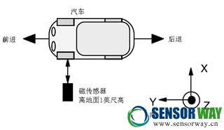 對于車輛方向與類型檢測,可以將磁傳感器放置在路邊,也可以埋在地底。沿著被檢測的車道即可。三軸磁傳感器X、Y、Z軸方向定義如圖2所示。