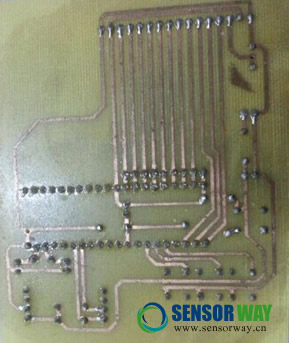 制作 PCB 板時注意布線不要過于緊湊,在焊錫時候容易焊在一起導(dǎo)致短路,本次設(shè)計的 PCB 板是簡易 PCB 板, .將轉(zhuǎn)印紙有圖的一面緊貼覆銅板有銅一面, 設(shè)法將紙固定(如用透明膠等) ;銅面朝上,水平放入熱轉(zhuǎn)印機(jī),稍用力送入,感覺板被夾住后放手;PCB 板從機(jī)器另一邊出來后,緩慢將轉(zhuǎn)印紙分離,并檢查轉(zhuǎn)印結(jié)果是否符合要求,若出現(xiàn)斷線等情況,可用油性筆補(bǔ)上。然后對銅板進(jìn)行腐蝕只有電路上附有銅板,清洗就是要將 PCB 板上的墨粉去掉,露出光潔的銅線;松香是助焊劑,助焊劑的作用是輔助熱傳導(dǎo)、去除氧化物、降低被焊接材質(zhì)表面張力、去除被焊接材質(zhì)表面油污、增大焊接面積、防止再氧化等,在這幾個方面中比較關(guān)鍵的作用有兩個就是:去除氧化物與降低被焊接材質(zhì)表面張力。
