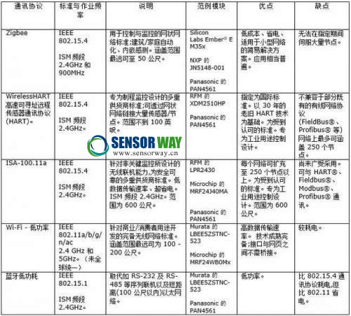 工業(yè)用無線網(wǎng)絡(luò)所使用的通訊協(xié)議表