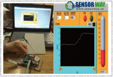 本系統(tǒng)對一個溫度傳感器傳輸?shù)臄?shù)據(jù)進行了測試,得到的結(jié)果和溫度及所測的結(jié)果非常接近,但是其比溫度計的靈敏度和分辨率要高很多。另外系統(tǒng)工作也非常穩(wěn)定,環(huán)境的影響也很小。圖3是測試的結(jié)果,其中20℃的時候為室溫,溫度升高是由于用手觸摸傳感器所致。