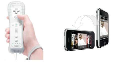 這個戰(zhàn)略已經(jīng)取得巨大成功,意法半導體因此而迅速崛起,成為世界最大的MEMS器件制造商。目前意法半導體的MEMS產(chǎn)品被世界知名的消費電子產(chǎn)品選用,如任天堂的Wii游戲機、蘋果的iPhone手機和iTouch播放器以及其它產(chǎn)品[2]。例如,任天堂的Wii游戲機的遙控器“魔棒”(圖1a)使用意法半導體的慣性傳感器檢測玩家的動作,如打網(wǎng)球、高爾夫球或其它游戲,使玩家能夠沉浸在游戲之中并參與屏幕上的人物運動。這個功能促使先進的計算機游戲取得巨大飛躍,從純粹的被動活動轉化為令人興奮的主動的游戲參與者。同樣地,蘋果的iPhone采用意法半導體的MEMS傳感器檢測手持通信設備相對于用戶視野的方向,然后相應地調(diào)整屏幕的顯示方向(橫向或縱向),從而為用戶提供更多的使用靈活性和功能 (圖1b)。