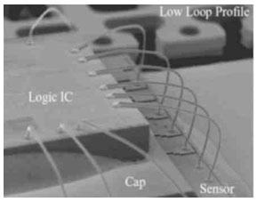 圖 5:在采用注塑封裝方法前利用絲焊方法把半導體芯片與下面的MEMS傳感器裸片連接在一起的堆疊結構的SEM圖像。