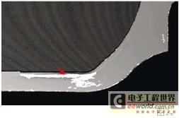 更為嚴(yán)重的是,這些未粘合區(qū)域幾乎形成一條從空腔內(nèi)部到達(dá)外部環(huán)境的連續(xù)通路。如果該器械在此條件下工作并且暴露于潮濕、污染、熱循環(huán)及沖擊和振動(dòng)環(huán)境,則很可能形成連續(xù)通路,引起無法預(yù)料的故障。在可靠性較高的器械中,此界面上的任何未粘合狀況都是引起產(chǎn)品不合格的原因。在此故障類型不太重要的器械中,則可容許出現(xiàn)規(guī)定的小面積未粘合狀況。