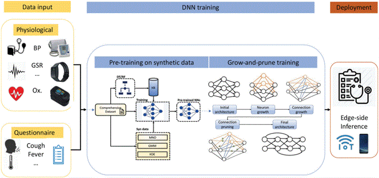 這些數(shù)據(jù)是從意大利北部一家醫(yī)院的健康、無癥狀和有癥狀的個體中收集的。醫(yī)生在那家醫(yī)院給它們貼上標(biāo)簽,以實(shí)現(xiàn)有監(jiān)督的機(jī)器學(xué)習(xí)。然后使用基于我們的增長和修剪神經(jīng)網(wǎng)絡(luò)合成程序的數(shù)據(jù)訓(xùn)練神經(jīng)網(wǎng)絡(luò)。