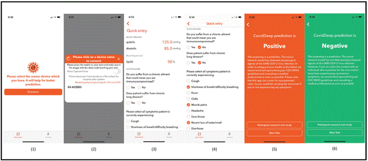 CovidDeep 應(yīng)用程序用戶體驗(yàn)的屏幕截圖。