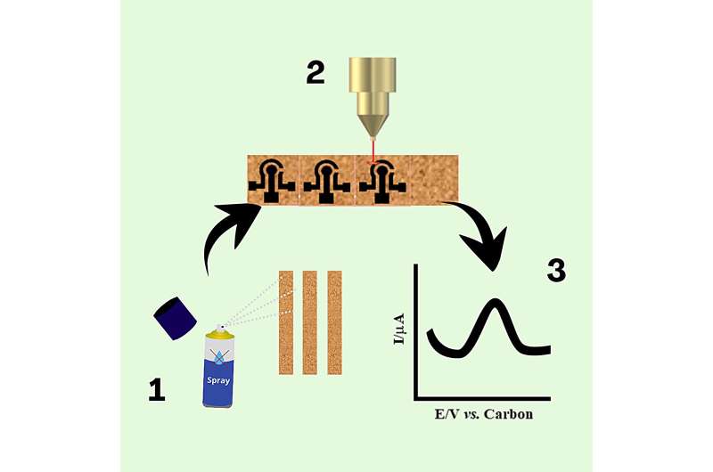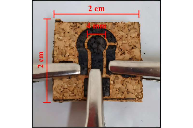 研究團(tuán)隊(duì)通過激光標(biāo)記對(duì)軟木樣品進(jìn)行處理,將其轉(zhuǎn)化為石墨烯 —— 一種高導(dǎo)電性的碳材料。整個(gè)過程仿佛是聚焦的光束在軟木內(nèi)部 “繪制” 出導(dǎo)電通路。亞內(nèi)吉茨解釋道:“這種工藝具有可持續(xù)性,無需使用有毒試劑,且能生成高導(dǎo)電性材料。這一點(diǎn)至關(guān)重要,因?yàn)閬喯跛猁}的電化學(xué)氧化反應(yīng)是已知的,因此我們需要高導(dǎo)電性的傳感器才能實(shí)現(xiàn)對(duì)該物質(zhì)的檢測(cè)。”
