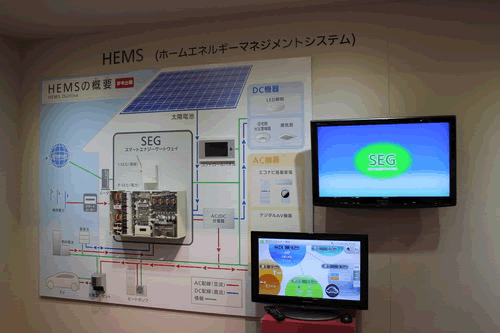 首先我們來到了家庭總體展示區(qū),這里展示裝配了“Eco NAVI”的最新的節(jié)能家電陣容。此外,還可以在這里親身體驗實現(xiàn)了“Eco NAVI”的“亮度傳感器”和“人·物傳感器”。這里還展示了創(chuàng)能的“家用燃料電池”、“太陽能電池HIT®”,蓄能的“家用鋰電池”,能源管理的“Lifinity”、“SEG(智能能源閥門)”,以及住宅用的“EV(新能源汽車)”相關(guān)措施等。當(dāng)然,和我們?nèi)粘I钭顬橘N近的還是冰箱、空調(diào)等家電產(chǎn)品,有一位美麗的講解員小姐正在上課哦,和記者一起聽聽吧。