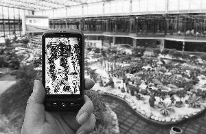昨天,在紫金生態(tài)園中,工作人員通過手機上網(wǎng)觀看“智能溫室”的虛擬場景,輕點屏幕就可以顯示各項實時數(shù)據(jù)。
