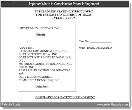 泡泡網(wǎng)手機(jī)頻道3月21日 據(jù)國外媒體報道,近日一家叫做Imperium(IP)Holdings的公司對包括蘋果、京瓷、LG電子、RIM、索愛、諾基亞和摩托羅拉在內(nèi)的幾家智能手機(jī)廠商提起訴訟,指控這7家廠商侵犯其5項智能手機(jī)圖像傳感器專利。