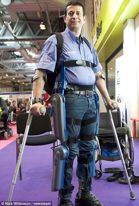 據(jù)英國《每日郵報(bào)》報(bào)道,ReWalk設(shè)備包括裝配發(fā)動(dòng)機(jī)的腿部支架,傳感器,裝有電腦控制器和電池的黑色背包及一支幫助身體平衡的拐杖。穿上這條機(jī)器褲后,所有動(dòng)作完全由用戶控制,用戶可通過手腕上的遙控腕帶發(fā)出站、坐、行,蹲等命令,身體前傾以激活身體傳感器,機(jī)械腿就可以行走了。停下來也非常簡單,只需要直起身體。