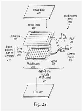據(jù)了解,這是一個(gè)可以位于觸控屏幕上的RFID標(biāo)簽讀取器,可以與觸摸傳感器電路板上的RFID電路結(jié)合,共用的金屬天線可以使設(shè)備不通過接觸就可以實(shí)現(xiàn)RFID應(yīng)答。