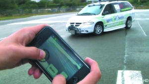 用戶可以在iPhone上完成對汽車的一切駕駛動作,包括加速、剎車和控制方向:右手拇指可以直接在屏幕上觸摸油門和剎車的圖標,而左手拇指在按住屏幕上的方向盤圖標后,左右搖擺iPhone即可遠控汽車方向盤的左右轉(zhuǎn)動。