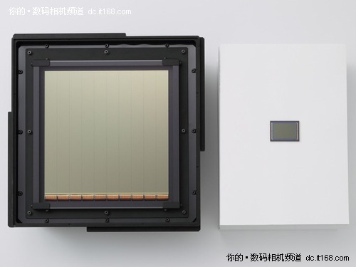 ▲左邊是佳能的超級CMOS,右邊是一塊135全畫幅傳感器