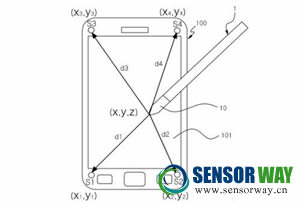 據專利文件顯示,三個超聲波傳感器可以識別二維的數據,而4個超聲波傳感器則能夠識別三維的數據。