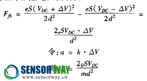 該信號經(jīng)交流放大器放大、檢波和適當?shù)男Qa, 反饋到中間極板,由其在電容器極板間產(chǎn)生靜電力, 此靜電力的力矩使檢測質(zhì)量塊保持在零位。它與加 速度作用所引人的力矩大小相等,方向相反。當系 統(tǒng)處于平衡時,慣性力與反饋力平衡,就其大小來 說= 若視電容為理想平板電容,上下電容間隙相等,則靜電反饋力為;