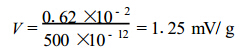 圖1顯示了傳統(tǒng)的加速度傳感器的結構,它具有兩塊X切 向石英晶體,若對晶體施加壓力則在中心電極上產(chǎn)生的電荷是 疊加的。由環(huán)狀彈簧施加的機械預載必須比預期沿向上方向所施最大加速度力要大。晶體的兩外表面與殼罩相連因而處 于低電位,此傳感器具有0.62 pC/g的輸出,并在15 kHz左右 發(fā)生最低頻率諧振。兩晶體的電容僅有幾個pF,從而與任一 長度的電纜電容相比均可忽略不計。傳感器重約250~300 g, 可用螺栓固定。加上電纜,若總電容是500 pF,則開路輸出電壓是