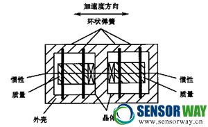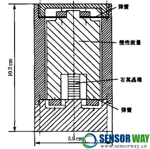 圖1用環(huán)狀彈簧加載具有兩石 英晶片的加速度傳感器