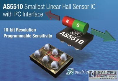 奧地利微電子公司(SWX 股票代碼:AMS)推出AS5510線性霍爾傳感器IC,具有業(yè)內(nèi)尺寸最小的10位數(shù)字輸出分辨率。AS5510采用微小的1.46 × 1.1mm芯片規(guī)模封裝,包括一個I²C 2線串行接口,以便在4種不同靈敏度范圍內(nèi)切換,并實現(xiàn)到微控制器的簡單的數(shù)據(jù)傳輸。