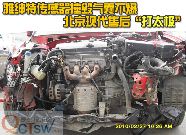 說起自己的北京現(xiàn)代雅紳特,王女士和丈夫就很傷心,她們這臺汽車是2009年12月02日購買的。僅僅2個月零5天后,王女士的丈夫駕車途經(jīng)滄州時,大約上午9點多,汽車意外地高速撞上了路邊的護欄,因車速過快,巨大的撞擊將車的頭部全部報廢,不過,萬幸的是沒有人員受到嚴重傷害。