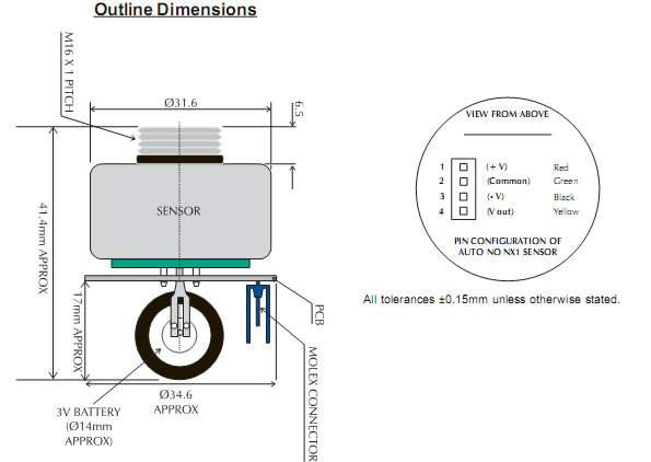 | NX1一氧化氮傳感器 | 0.05 ± 0.01 µA/ppm | 0-5000ppm | |